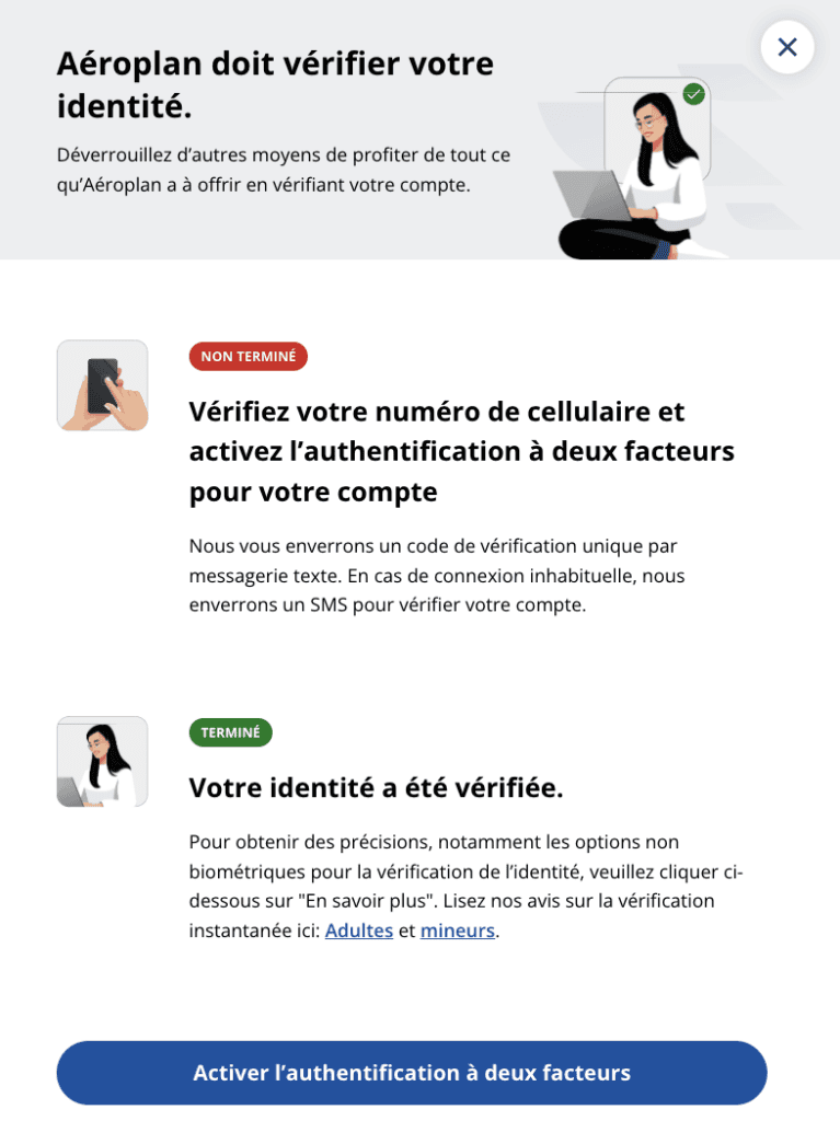 Cependant, la vérification d’identité d’Aéroplan n’est pas obligatoire.