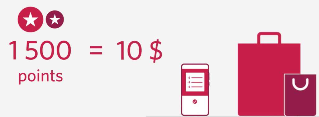 Les points Adapta valent entre 0,67 et 0,83 cents chacun. Lorsque vous échangez vos points Adapta contre un crédit au compte ou pour payer un achat récent, vos points valent 0,67 cents chacun (1 500 points Adapta = 10 $). Lorsque vous échangez vos points Adapta contre des paiements/contributions à votre REER, CELI ou autre produit CIBC, vos points valent 0,83 cents chacun (1 200 points Adapta = 10 $).