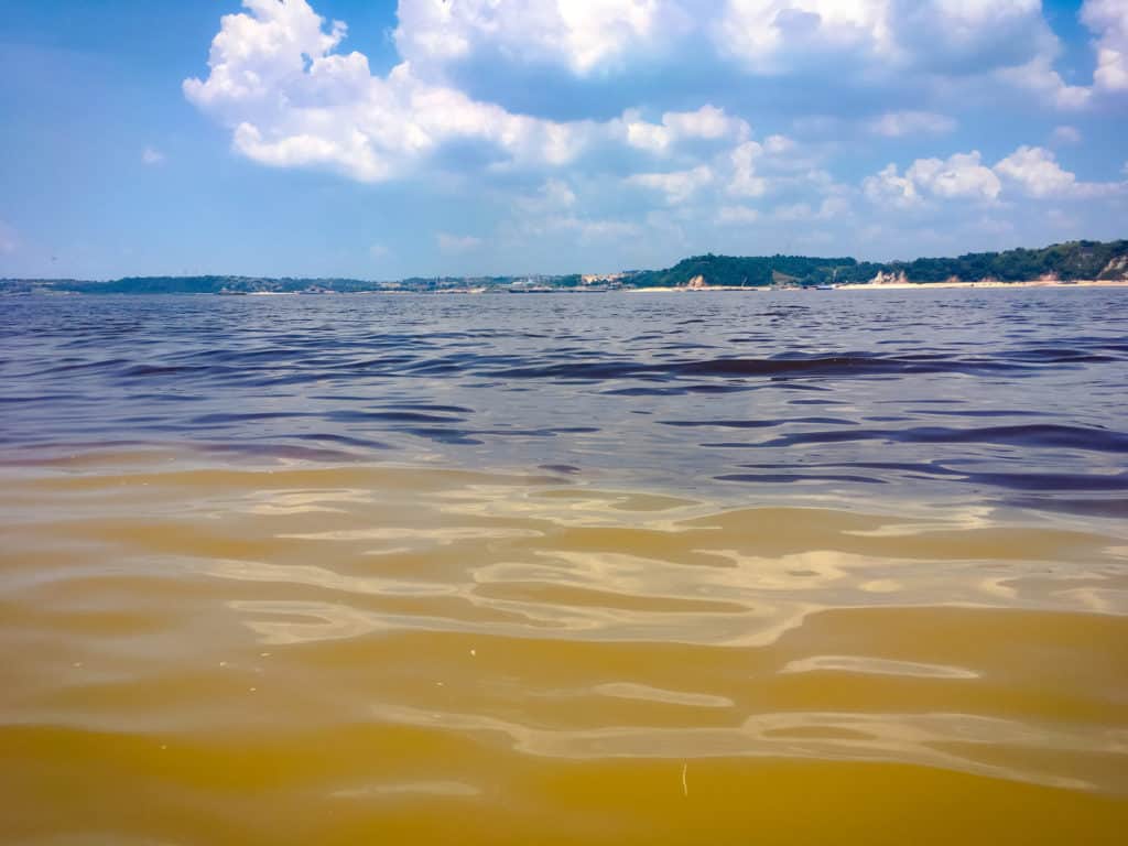 En direction de la jungle, on pourra voir la jonction entre la rivière Amazone et la Rio negro. La démarcation de couleurs est évidente.