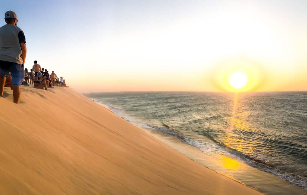 Station balnéaire exceptionnelle, Jericoacoara est unique de par son emplacement en bord de mer entourée de dunes de sable.