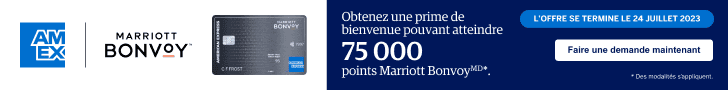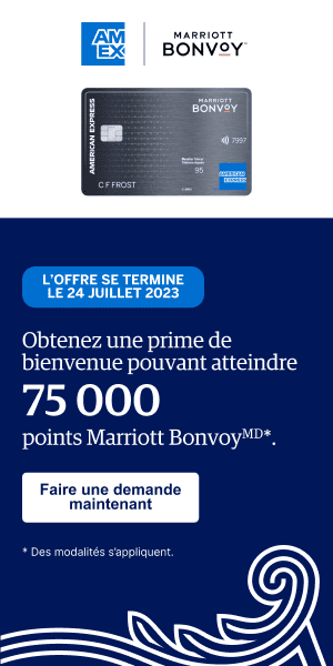 Au-delà de la prime de bienvenue exceptionnelle de chacune de ces deux cartes, vous obtiendrez 2 points par dollar pour tous vos achats et 5 points par dollar dans les établissements Marriott. Et chaque année, vous obtiendrez un certificat d’une nuit d’hôtel gratuite (valeur de 35 000 points) ainsi que 15 nuits-Élite comptant pour votre statut Marriott Bonvoy.