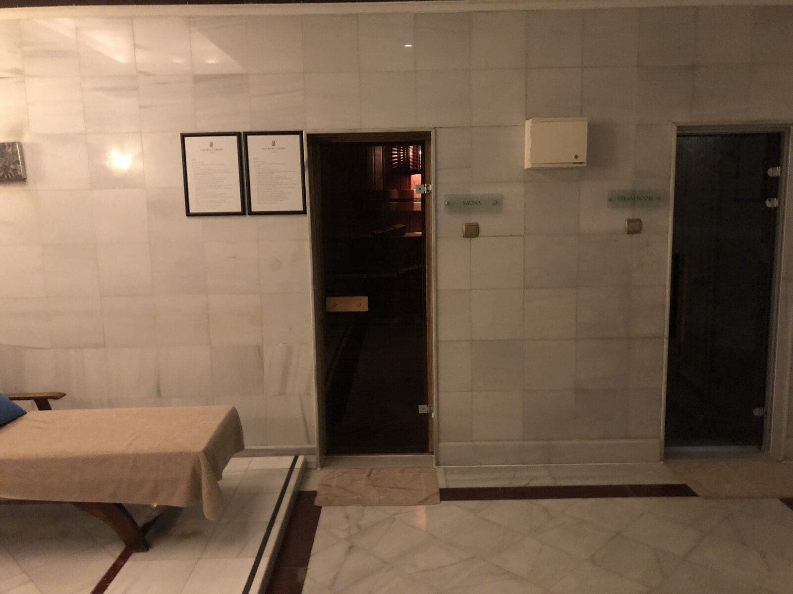 Les vestiaires sont très bien équipés avec douches, nécessaires de rasage, des serviettes et peignoirs. Mais aussi un hammam et un sauna sec.