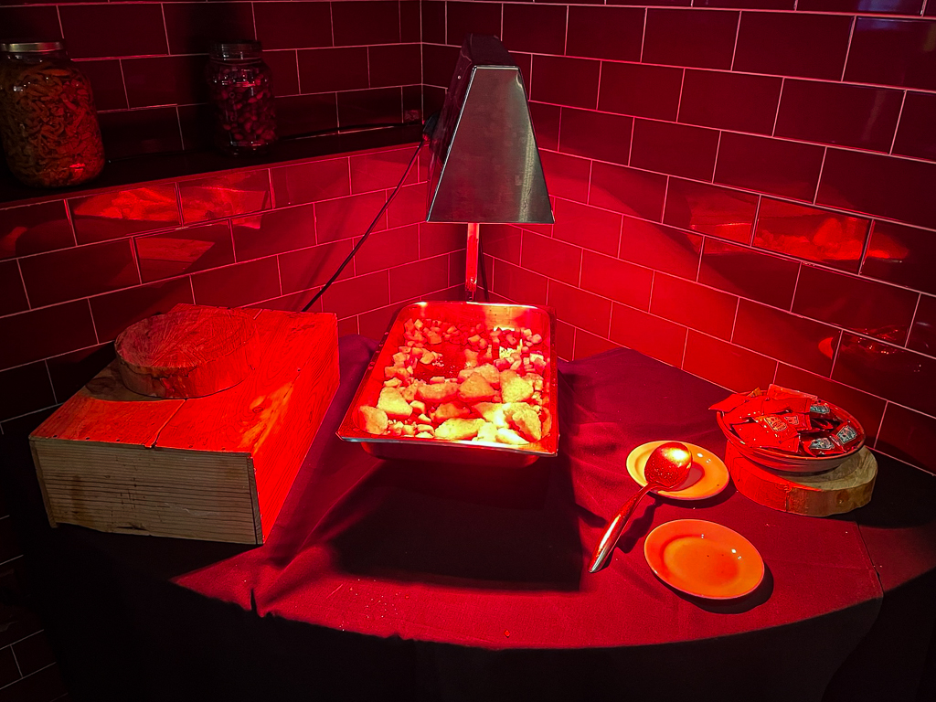 La réception quant à elle se trouve à la gauche du hall d’entrée. J’ai apprécié l’originalité du décor de la réception. Sa murale de grosse laine tissée à même un ensemble de fils tendus du plafond au plancher reproduit les lettres PUR.