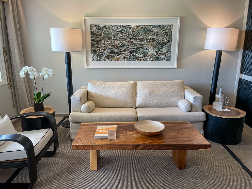 Grâce à ma carte de crédit Amex Marriott Bonvoy Brilliant (émise par American Express aux États-Unis), j’ai reçu deux certificats annuels de 85 000 points Marriott Bonvoy, que j’ai utilisés pour réserver notre séjour au Santa Marina. Je n’ai pas eu à débourser de points supplémentaires, car la chambre de base était affichée à 84 000 points la nuit aux dates de voyages convoitées, ce qui est très près du prix plancher de 80 000 points pour un hôtel de catégorie 9.