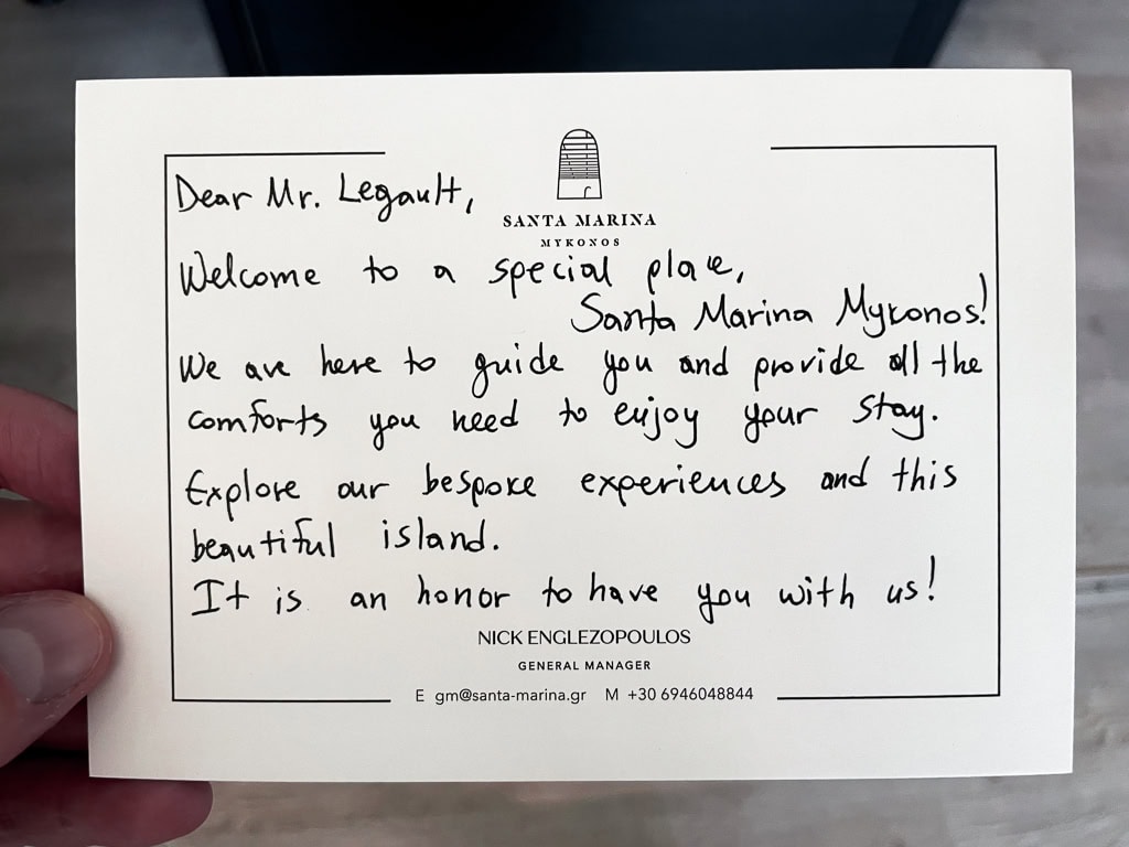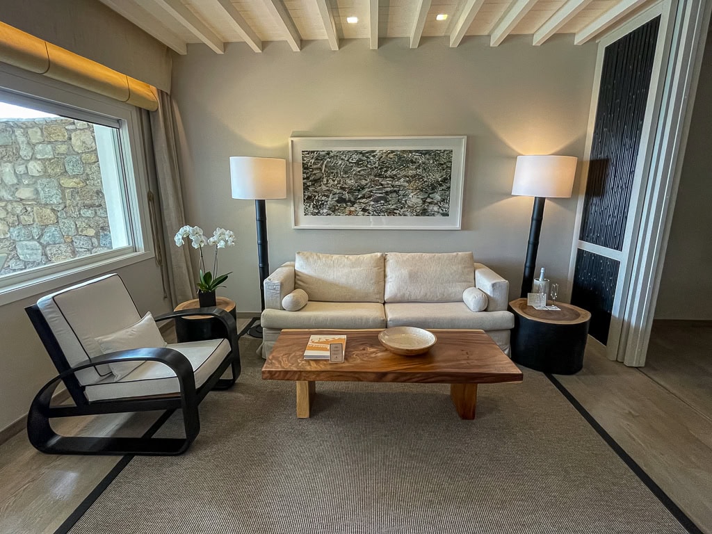 Par contre, les aménagements de cet hôtel, notamment sa plage privée, en font un excellent choix pour une expérience luxueuse sur l’île de Mykonos à peu de frais grâce aux points Marriott Bonvoy.