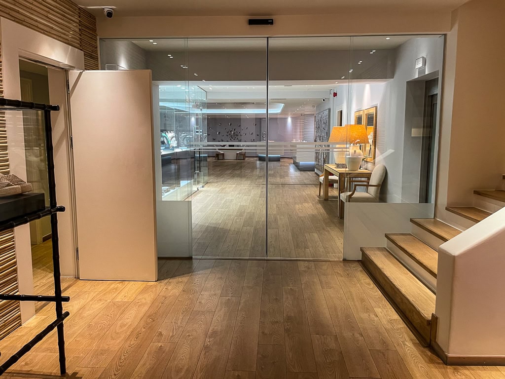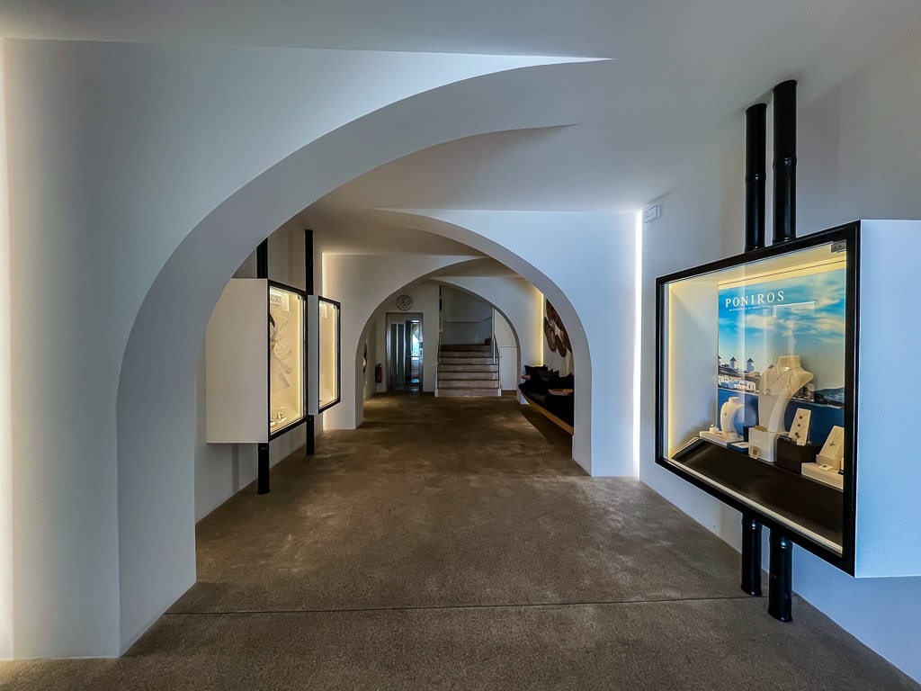 Un bref coup d’œil autour du hall d’entrée permet d’apprécier plusieurs œuvres d’art et du mobilier en bois massif assez simple. Ce hall fait également office de bijouterie avec ses divers présentoirs.