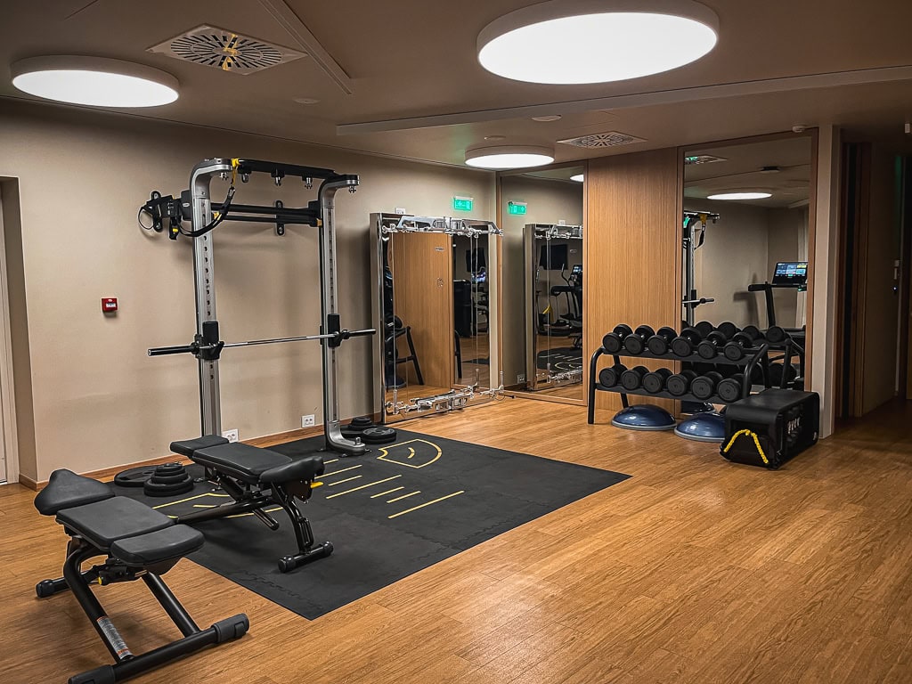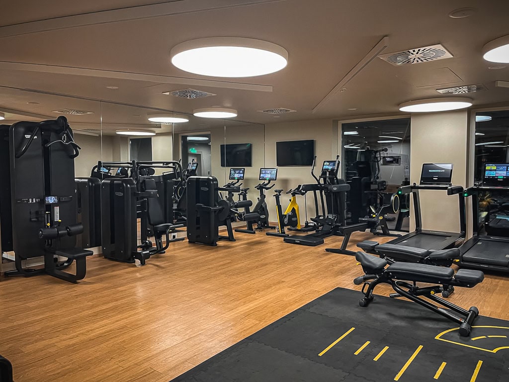 L’hôtel présente une salle d’entraînement de taille modeste, mais équipée de machines Technogym à la fine pointe de la technologie. Une petite pièce distincte est équipée d’une machine pour le pilates.
