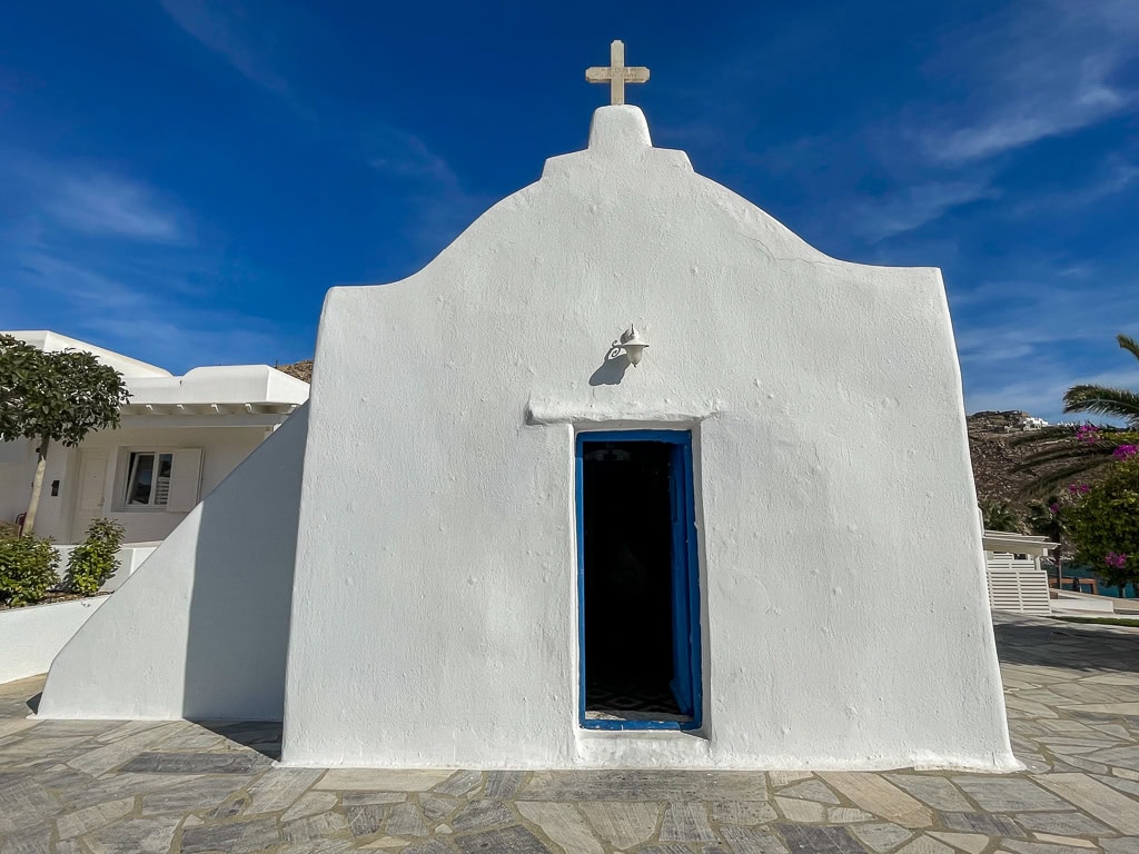 À moins d’une quinzaine de minutes de marche de l’hôtel se trouve la plage publique de la baie d’Ornos près de laquelle se trouve un arrêt d’autobus. L’autobus est assurément le moyen de transport à privilégier pour se déplacer à peu de frais à Mykonos puisqu’il n’y a qu’une trentaine de taxis et quelques chauffeurs Uber sur l’ensemble de l’île.