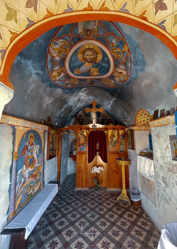 Sinon, la baie d’Ornos est animée de plusieurs bars et restaurants ; nous avons particulièrement apprécié les grillades traditionnelles grecques chez Lefteris Grill House. On y trouve également deux épiceries essentiellement destinées aux touristes : Ornos Market et AB Food Market. Au moment de notre passage, leurs tablettes étaient pratiquement vides alors que la saison touristique tirait à sa fin.