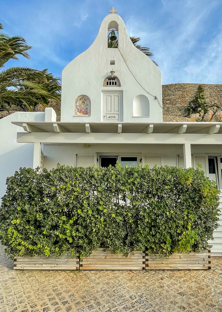 Parmi les autres curiosités de l’hôtel on retrouve : un phare, un helipad, un court de tennis en gazon synthétique, une boutique de vêtements de plage, une bijouterie, un moulin à vent et un cottage à l’architecture traditionnelle mykonienne équipés comme des villas et deux petites chapelles chrétiennes orthodoxe, Saint George, qui peut servir pour la célébration de mariages, et Santa Marina, qui a inspiré le nom de l’hôtel.