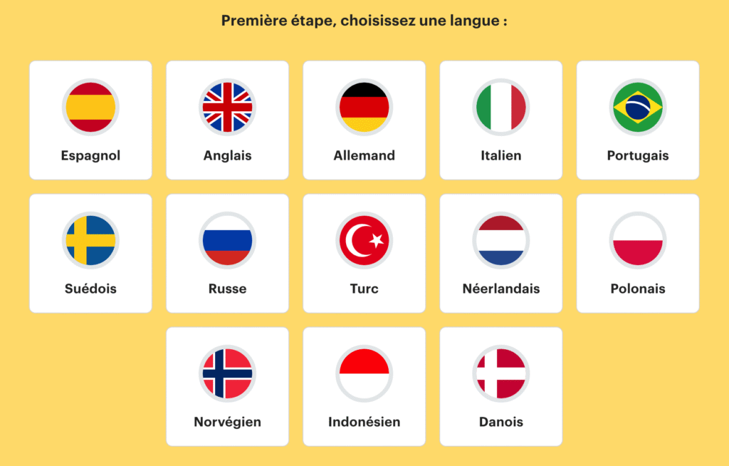 Vous pouvez apprendre les langues suivantes avec Babbel :
