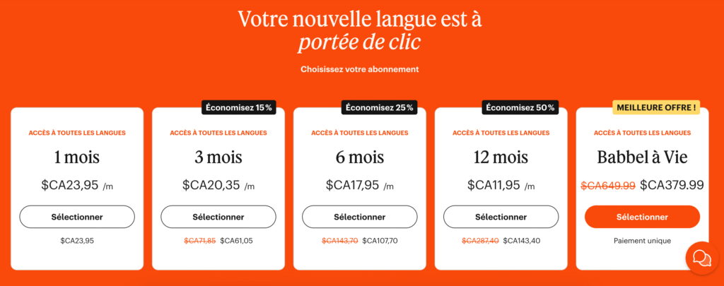 Il est également intéressant de noter que Babbel offre parfois des réductions sur les coûts mentionnés ci-dessus, donc vous pouvez voir des prix encore plus bas.