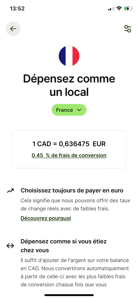 Ce que j’apprécie le plus, c’est la simplicité de l’application pour recharger ma carte et les frais minimes comparés à ma banque traditionnelle. Ma collègue Alexandrine l’utilise aussi lors de tous ses voyages.