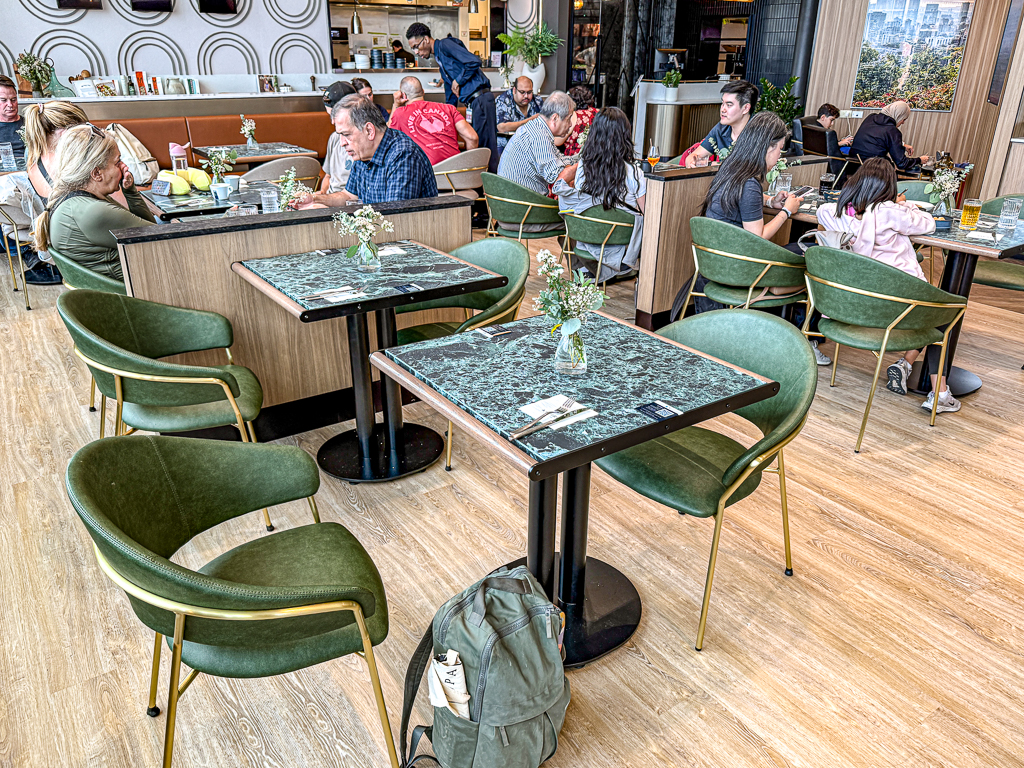 Lors de votre arrivée au salon, vous devez choisir entre le côté restaurant ou la section pour emporter; vous ne pouvez pas visiter les deux.