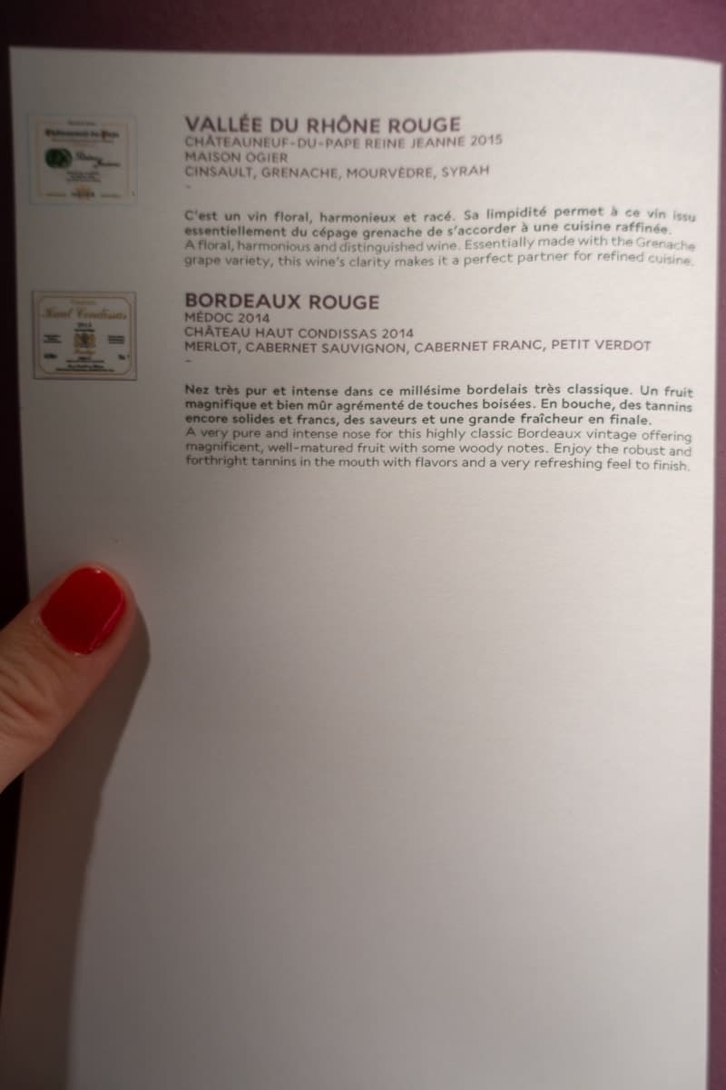 L’hôtesse m’apprend que je ne suis pas la seule à faire l’erreur. Peut être une organisation des plats sur le plateau à revoir. Le plat était en accord avec le reste et les alcools proposés judicieux.