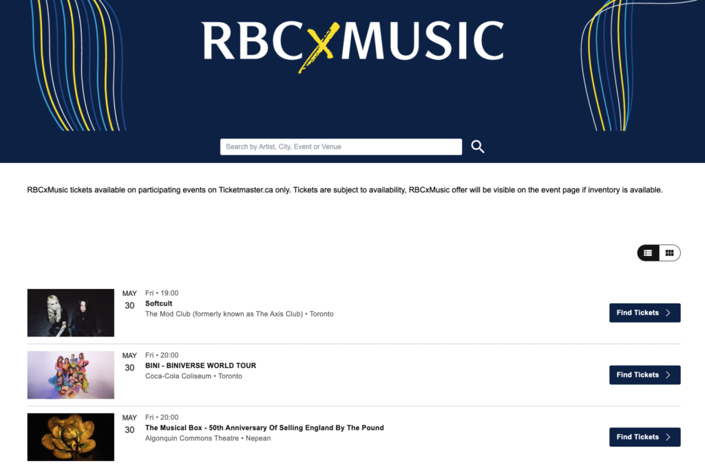 The RBCxMusic program provides tickets that are only available to RBC customers. In addition to getting exclusive seats, you will receive a $10 Concert Cash discount code for your next purchase. Each code allows you to obtain up to 4 tickets.