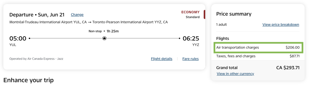 These examples show that on short routes like Montreal – Toronto, the Flex fare acts as a real accelerator for achieving Aeroplan Elite Status. On some itineraries, a relatively small price difference can nearly triple the number of SQC earned by upgrading from Economy Standard to Economy Flex.