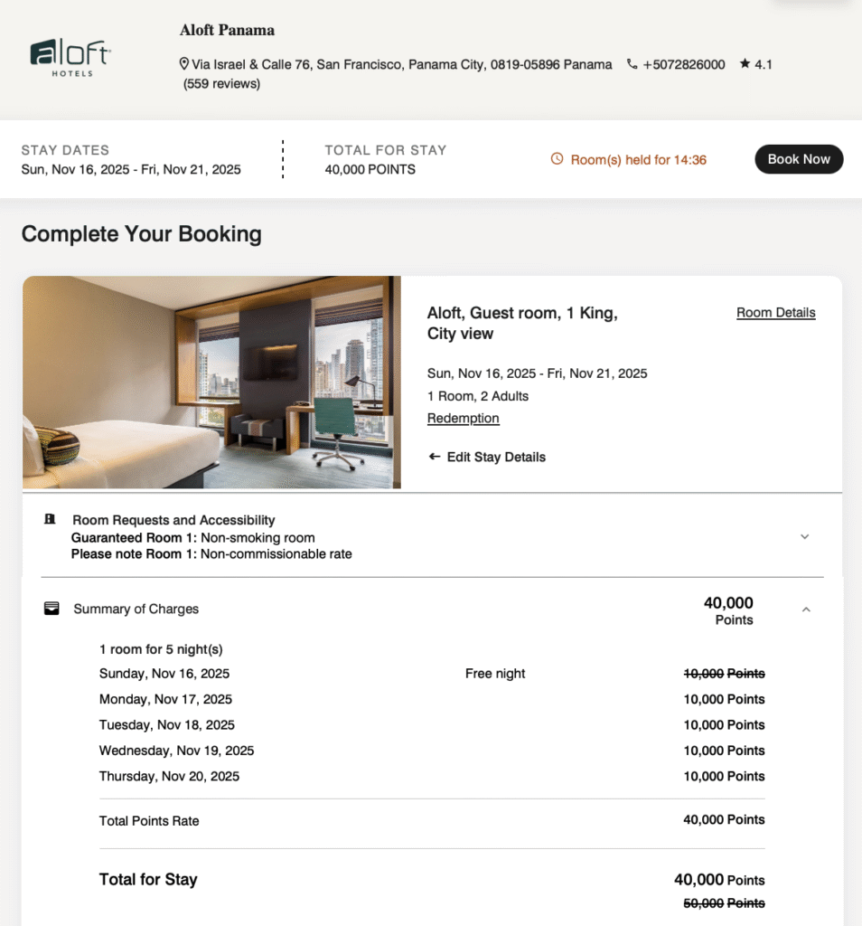 For example, you can stay close to the beaches of Tamarindo in Costa Rica, in the heart of historic Panama City, or near the Mayan ruins in Guatemala, while redeeming your points to cover all or part of your stay. Some places, like Panama, are very affordable in points! In fact, you can find overnight stays for as little as 10,000 points.