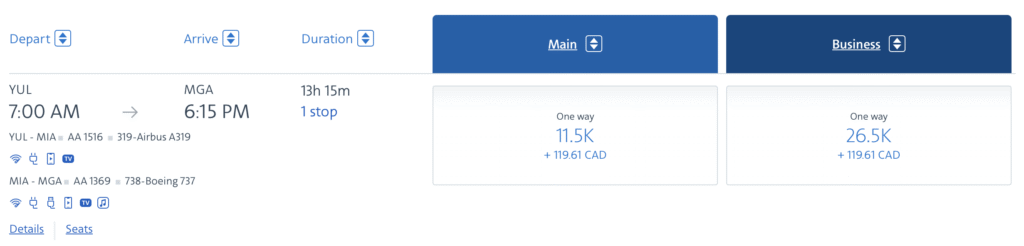 So, for destinations without a direct flight, it makes sense to take advantage of this American stopover, especially if the points rates are favourable. The AAdvantage program is particularly well suited for travellers who are open to a connection in the United States on their way to Central America.