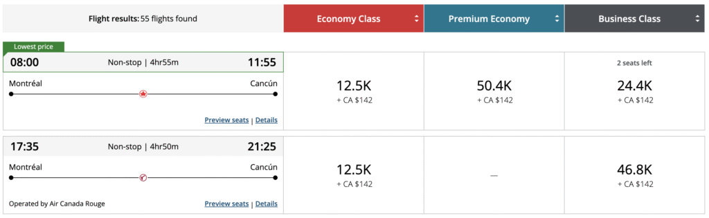 So-called “flexible travel” points programs, such as NBC Rewards, Scene+, CIBC Aventura, TD Rewards, American Express Membership Rewards, etc., are a great alternative. They allow you to book any flight for cash, then reimburse your purchase using your points. This model is particularly popular when award ticket availability is low or the price is really good.