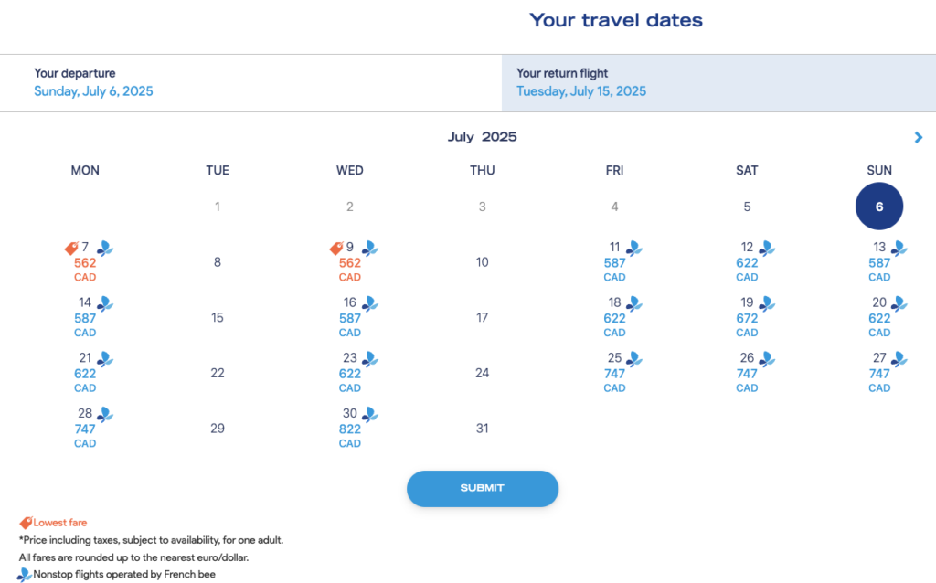 Keep in mind that it’s possible to combine loyalty programs: you can choose an Aeroplan flight for the outbound journey and a Flying Blue flight for the return, depending on the best offers available.