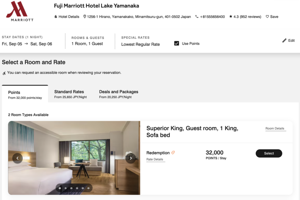 Those bonus points are more than enough to spend a few nights near Mount Fuji in Japan!