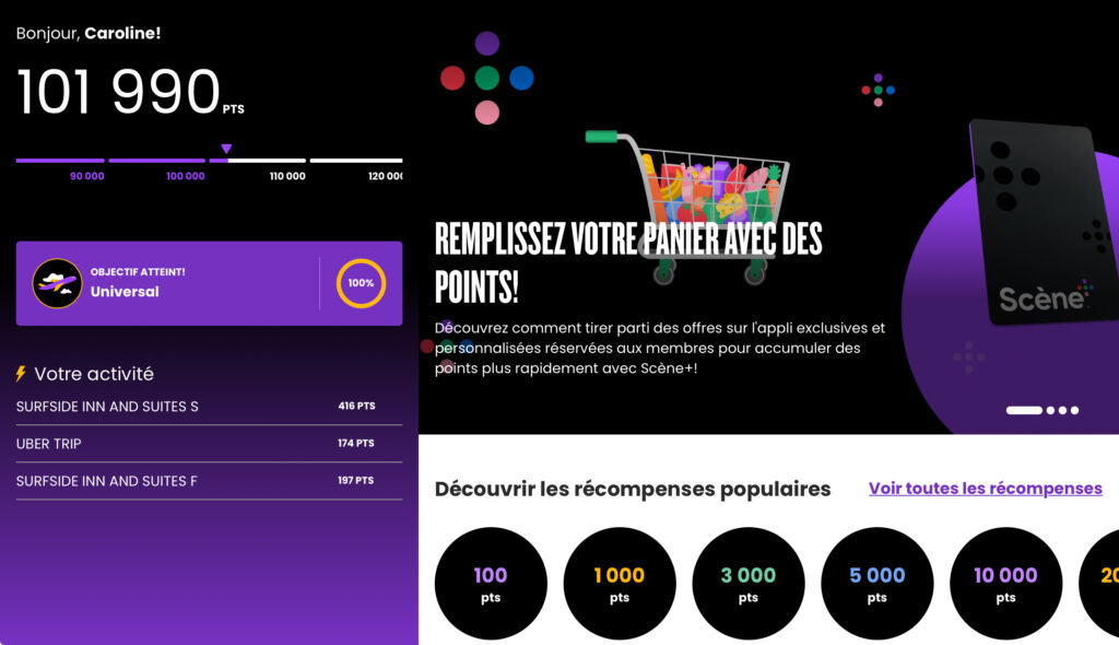 For accumulation, the welcome offer and Scene+ promotions at IGA boosted my points balance quickly.