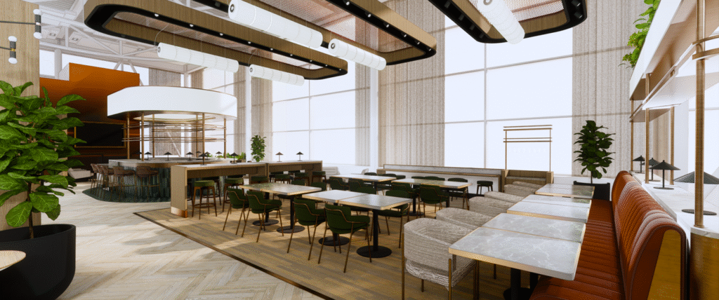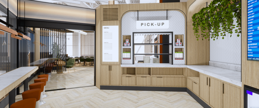Located in the domestic terminal, the lounge features an upscale, sit-down restaurant concept – a first for YUL. With its open kitchen and central bar, the YUL Aspire AMEX Lounge redefines the traditional airport lounge experience, offering a refined ambience worthy of Montreal’s finest establishments.