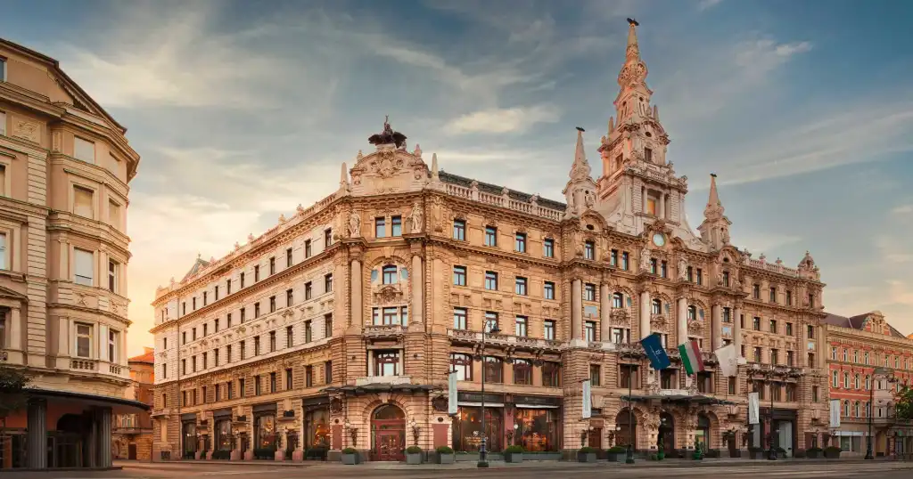 In Hungary, the Anantara New York Palace Budapest Hotel, located on Erzsébet Körút Boulevard, blends 19th-century historic elegance with modern luxury. With 185 rooms and suites, this five-star hotel stands out for its magnificent architecture and its renowned New York Café.