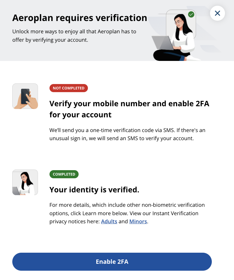 Regardless of the option chosen, you will only need to do this once as long as you remain an Aeroplan member. You will receive a confirmation email once your account has been verified.