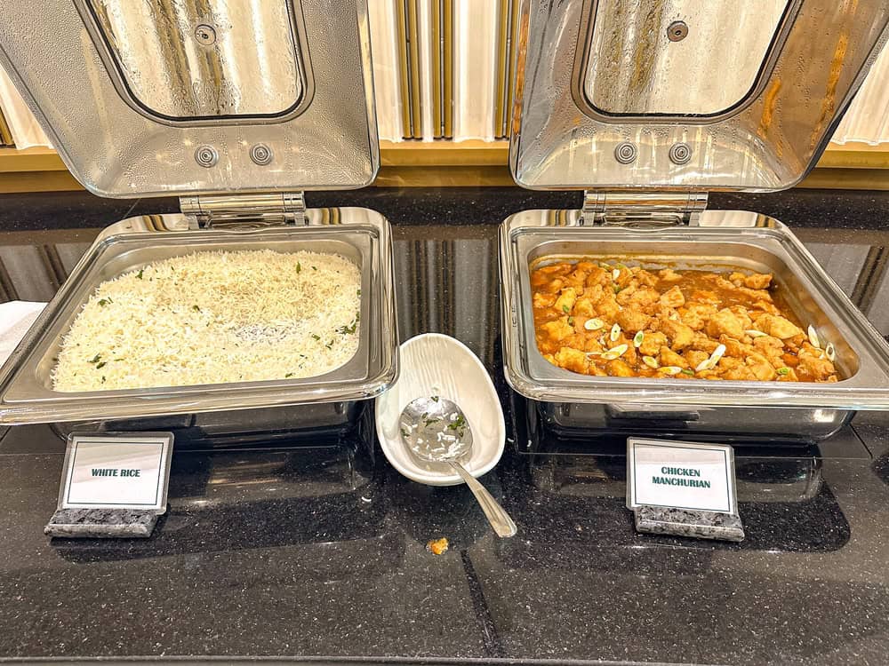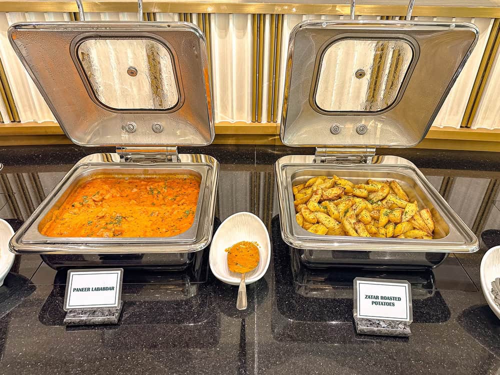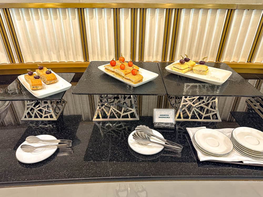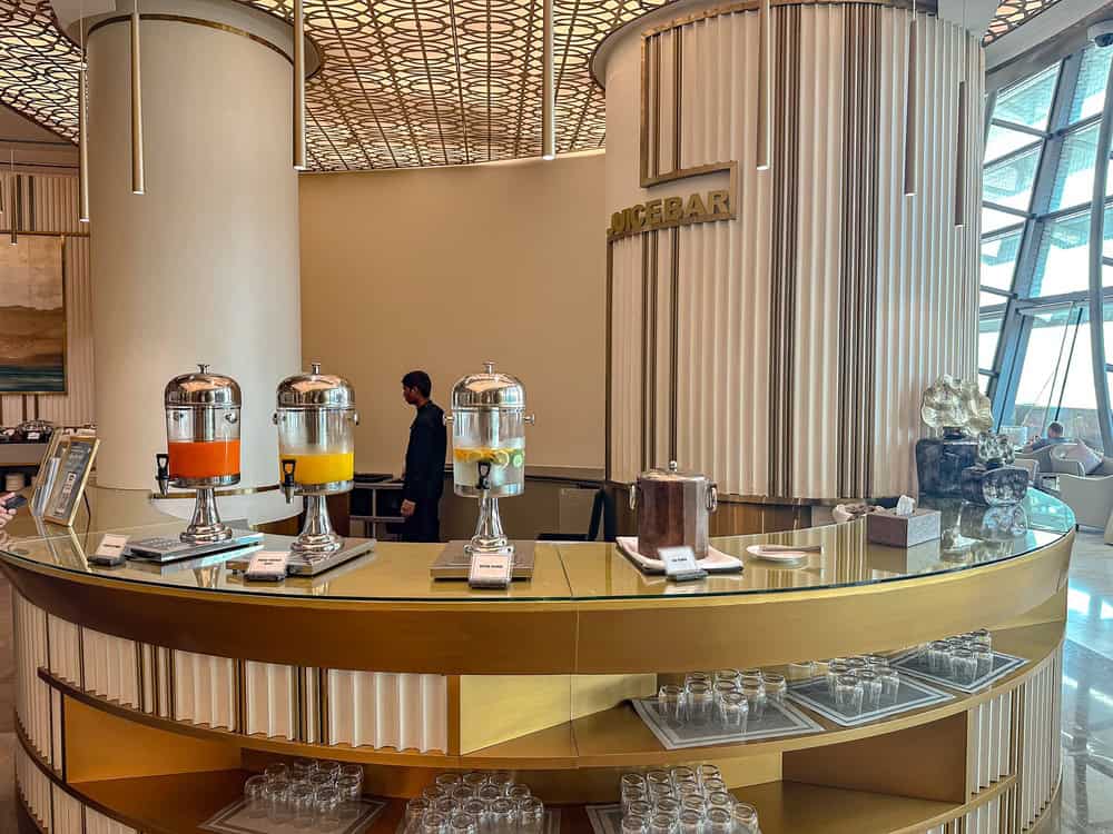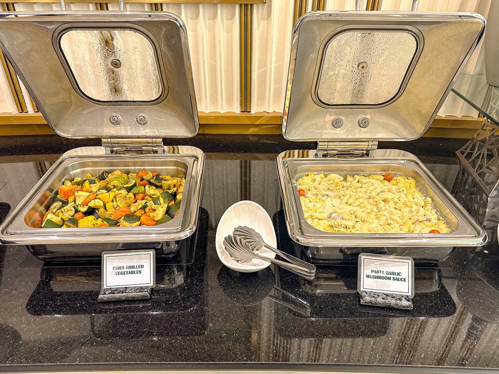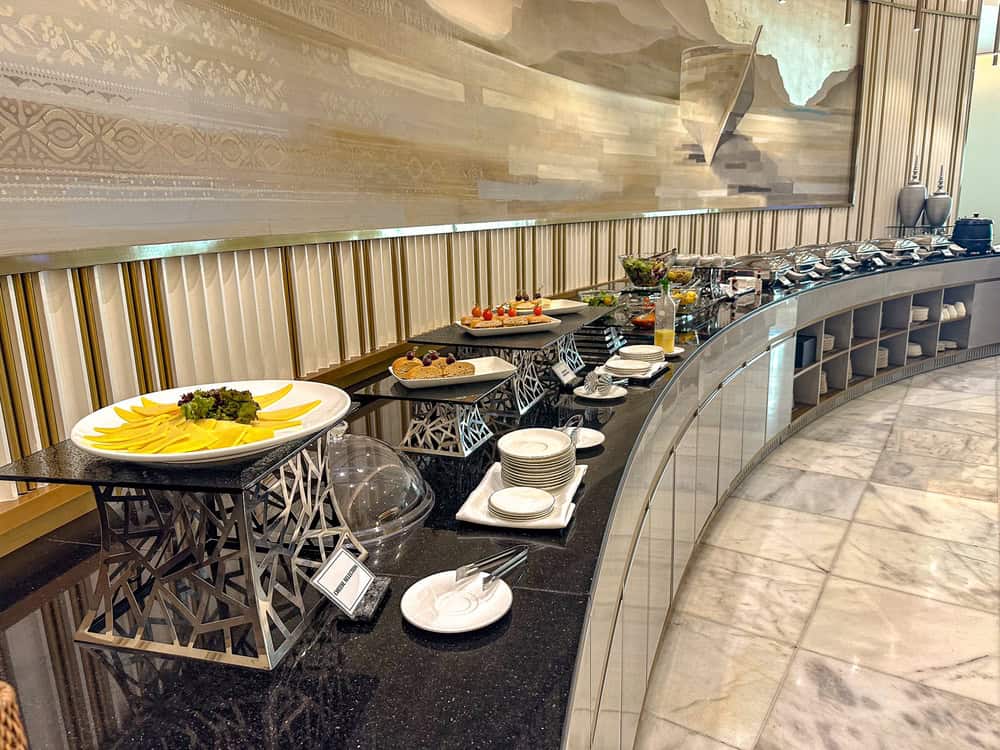The Oman Air First & Business Lounge is very elegant and comfortable. When I visited with my daughter Alexandra, it was quite busy. An outdoor access area allows for tarmac views. The food was rather standard, which was a bit disappointing as I had higher expectations for the quality. Nonetheless, it remains a very decent lounge to relax in before a flight.