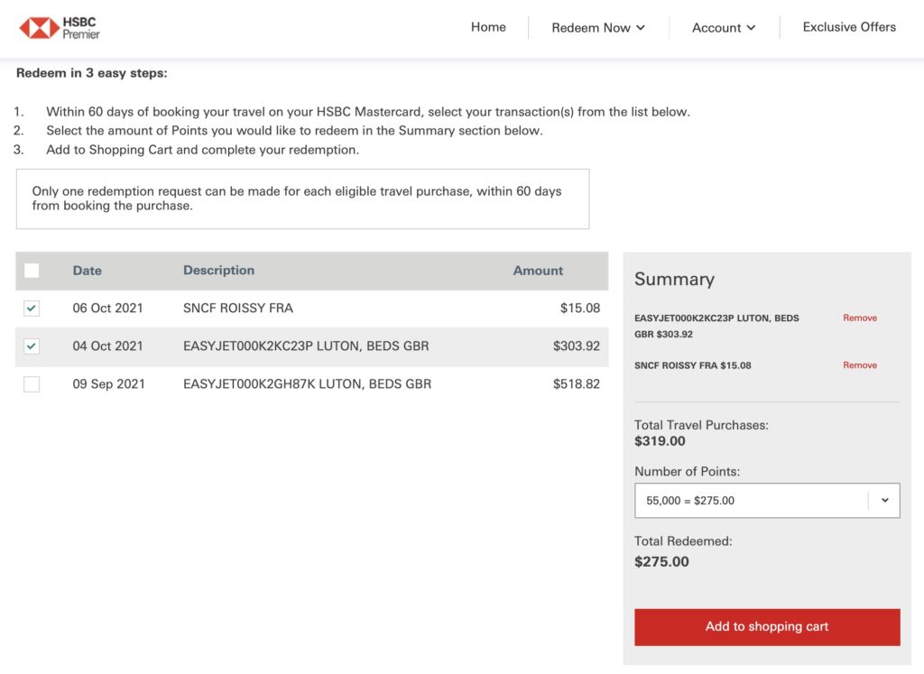 You must use at least 5,000 points ($50) when redeeming (after this threshold, redemptions are made at the rate of 100 points = $1).