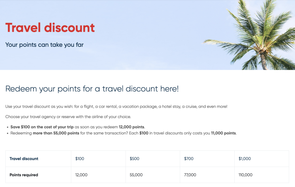 The best use you can make of your points is to book your trip through the À la carte Travel online agency powered by Transat. This way, you get the most value out of your points: you’ll earn a $100 credit for every 10,000 points redeemed. On this booking platform, you will find: