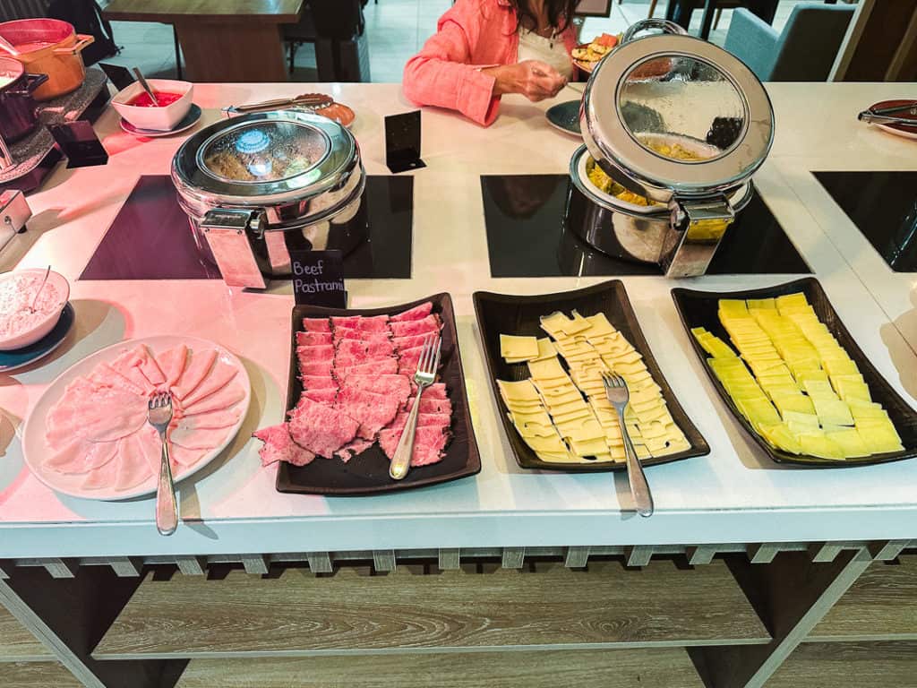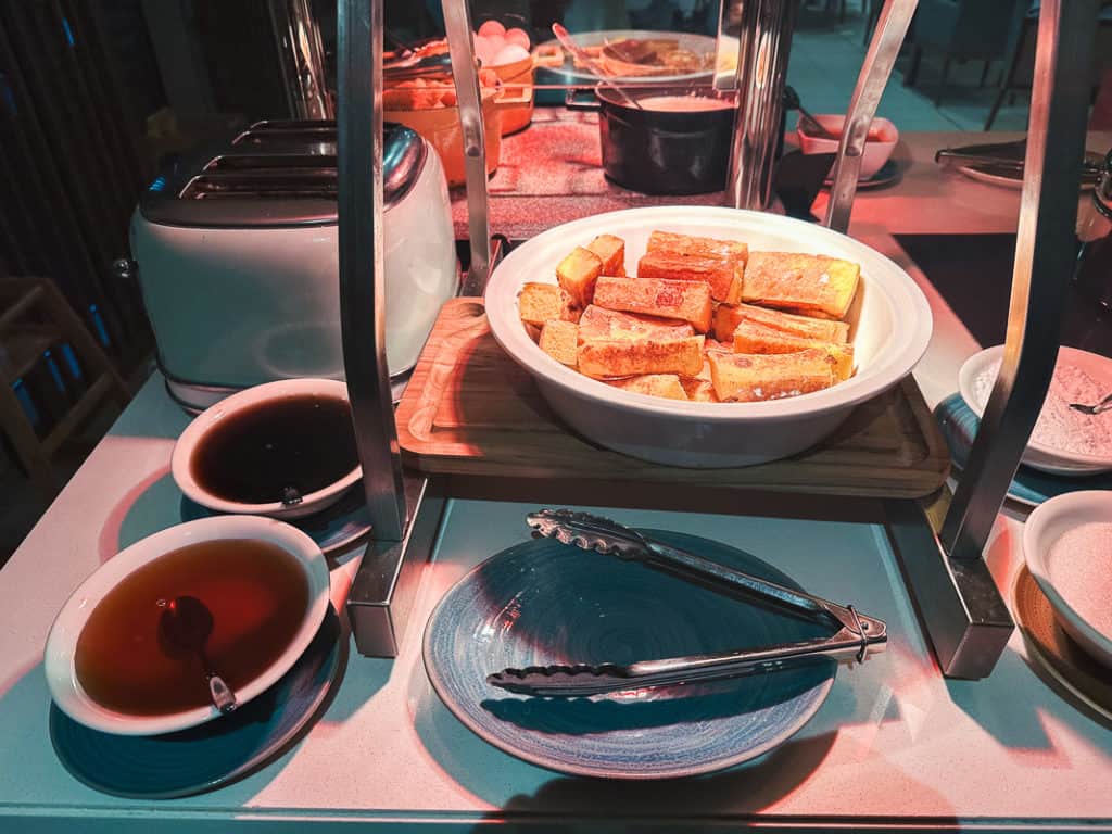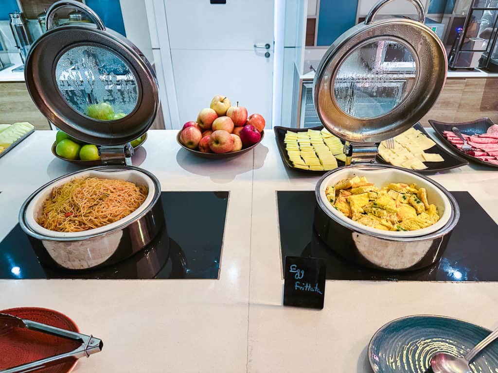 The buffet breakfast – free to all – offers a variety of Eastern and Western options.
