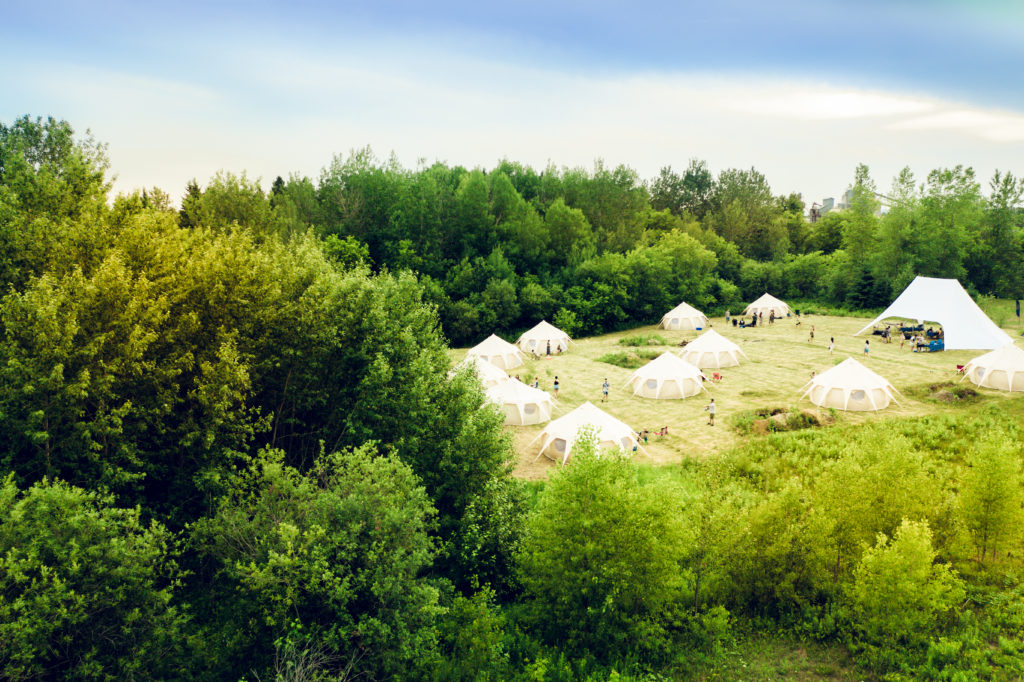 About fifteen spacious tents halfway between camping and hotel, or as they call it: glamping. They set up shop in exclusive and bucolic locations in “la belle province”.