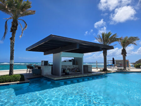 Then to the pool, just before sunset. A “feet in the water” bar is available: