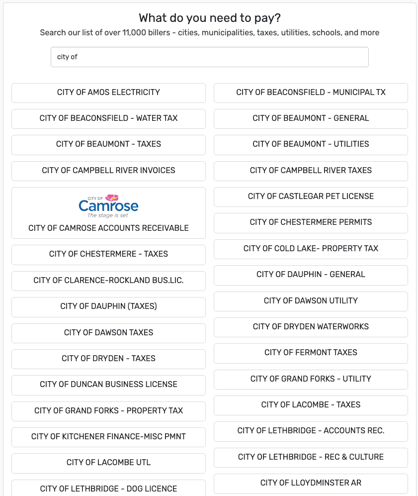 Here’s an example from the city of Quebec for municipal taxes paid with a credit card: