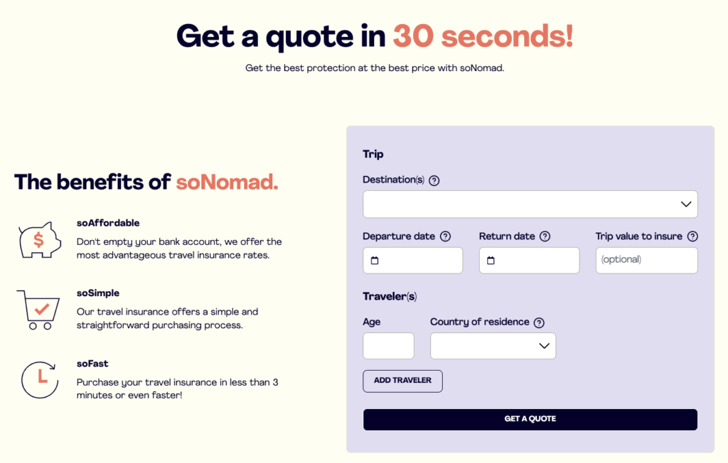 SoNomad is a personal insurance firm. SoNomad offers user-friendly and fast travel insurance directly on its website, without intermediaries. This helps lower the cost of the products offered to consumers.