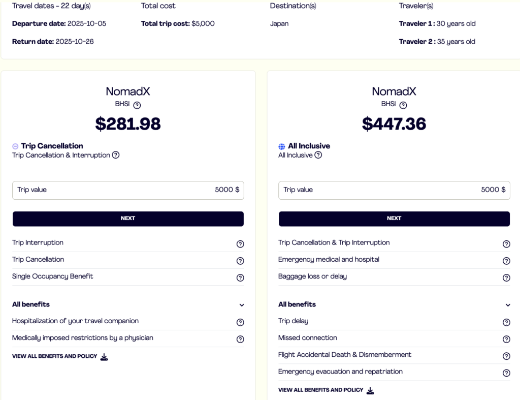 In addition, soNomad also provides travel insurance for visitors to Canada, such as: