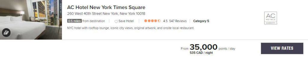 For example, at the Residence Inn New York Downtown Manhattan/World Trade Center Area, a night’s stay worth USD 319 + tax is available for 35,000 points.