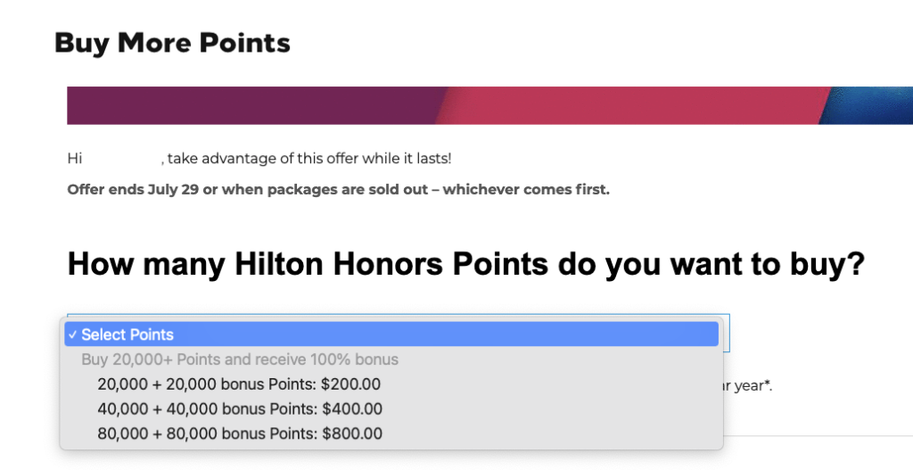 So buying Hilton Honors points can be interesting for some, whether it’s for a specific travel purpose and/or to top up a points balance for a free night.
