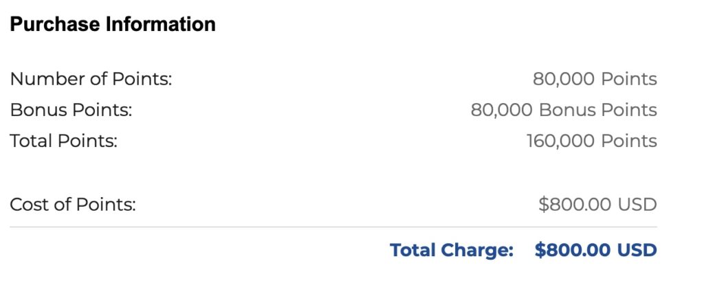 A minimum of 5,000 points must be purchased to benefit, and sales tax is added to the transaction.