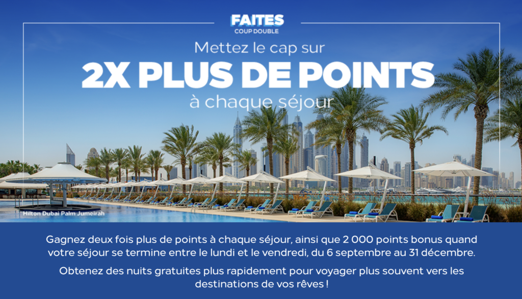 Hilton Honors is offering a fall promotion: earn 1,500 bonus points per stay between October 1 and December 31, 2025.