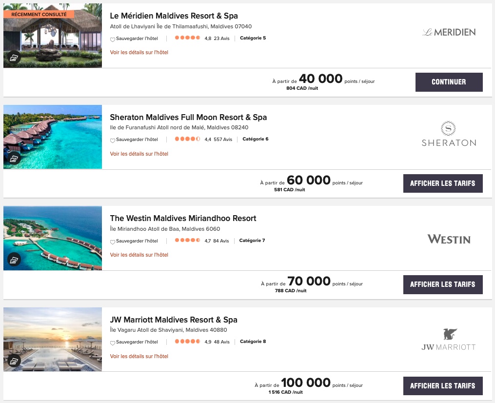 For popular destinations like the Maldives, these hotels will increase by up to 20,000 points per night: