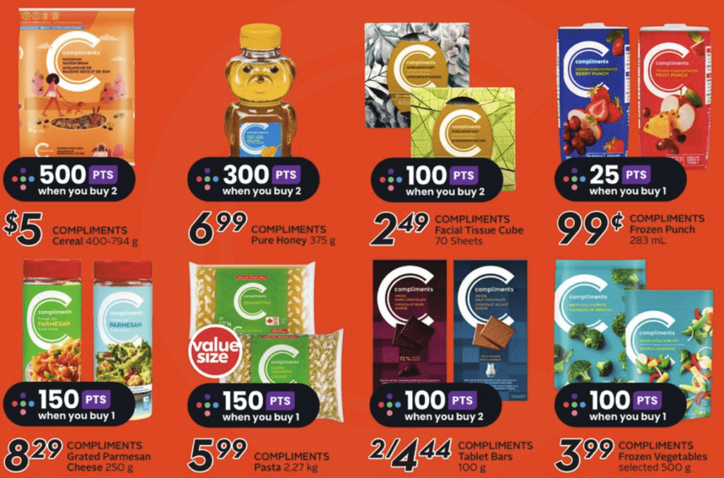 As for Super C, there is no earning based on spending, so the only way to earn points is through personalized offers from mobile applications. So that same $100 in groceries won’t automatically get you 100 Moi points at Super C.