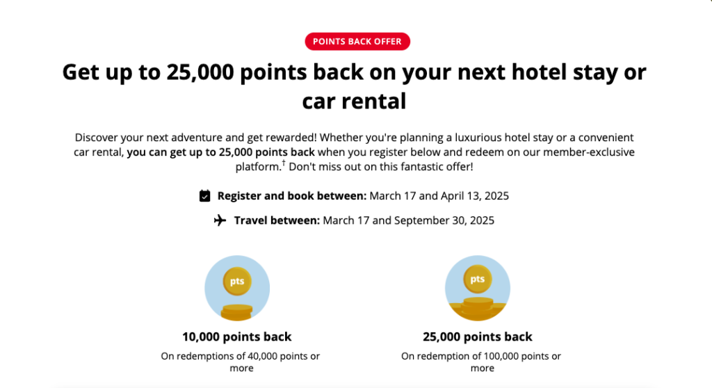 This promotion is available to all eligible Aeroplan members and applies to new hotel or car rental bookings made between November 2 and December 5, 2025.