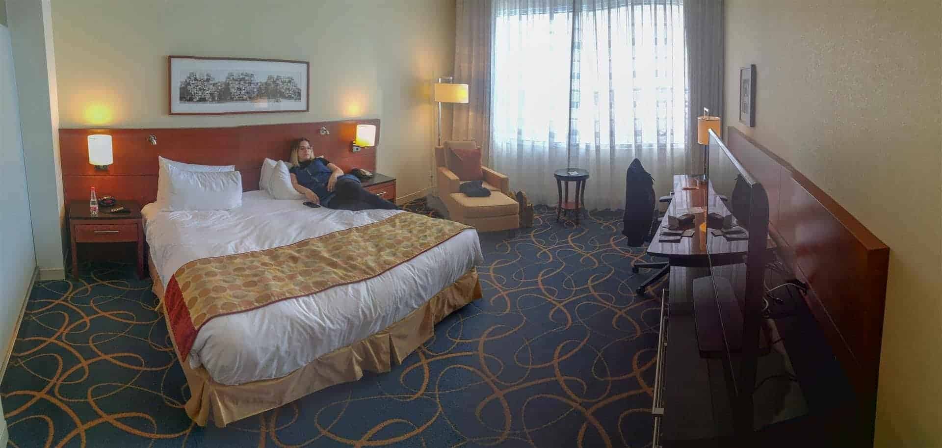 Étant membre au statut Gold dans le programme Marriott Bonvoy (grâce aux avantages de ma carte de Platine d’American Express), j’avais une préférence pour un hôtel Marriott Bonvoy. Notre choix s’est donc porté sur l’Hôtel Marriott Terminal Aéroport de Montréal, situé directement dans l’aéroport de Montréal.