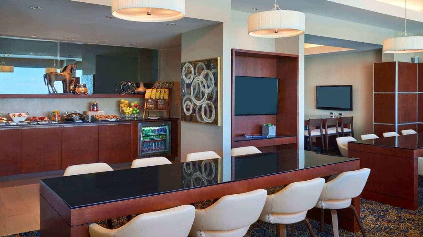 Nous avons donc réservé une chambre deluxe au tarif de 205 $. Mon statut avec Marriott nous donnait accès au salon Concierge avec petit-déjeuner inclus. Grâce à cet accès, nous pouvions profiter d’un 5 à 7 avec hors d’œuvres (salades, mini-burgers, wraps, soupes, fromages, fruits et desserts) ainsi qu’un bar d’honneur (payant).
