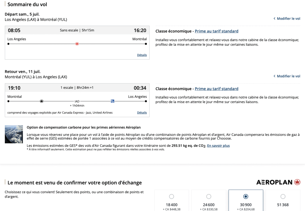 Par exemple, si une personne de Vancouver veut passer du bon temps à Montréal, elle pourra utiliser environ 31 000 points Aéroplan et 92 $ pour un billet aller-retour.