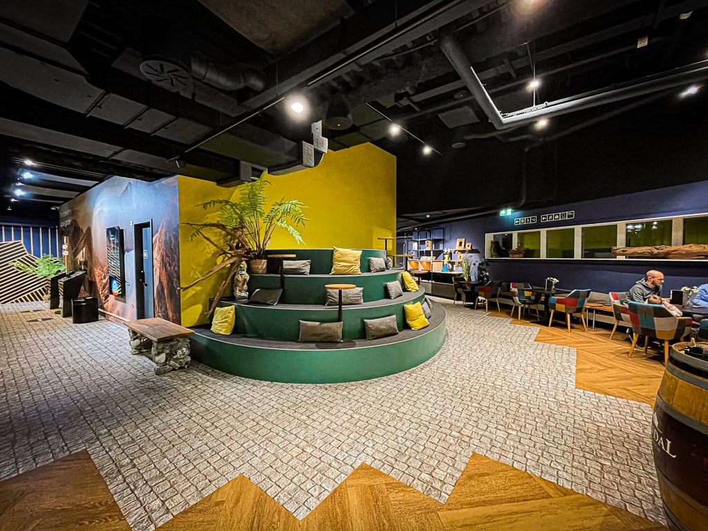 Les installations sanitaires étaient très propres et ce que j’ai le plus aimé : le café qui sert aussi d’espace de travail et de bar, disponible à l’entrée. On y retrouve des petites collations à des prix raisonnables et, le matin, on y prépare du café frais avec viennoiseries pour un coût abordable. Une section permet l’échange de livres entre voyageurs et une autre, de s’y installer avec notre propre repas. Un bel ajout lorsque notre « chambre » n’est en fait qu’un lit!